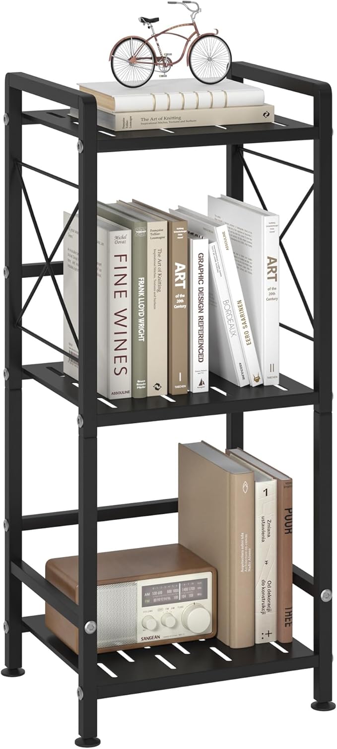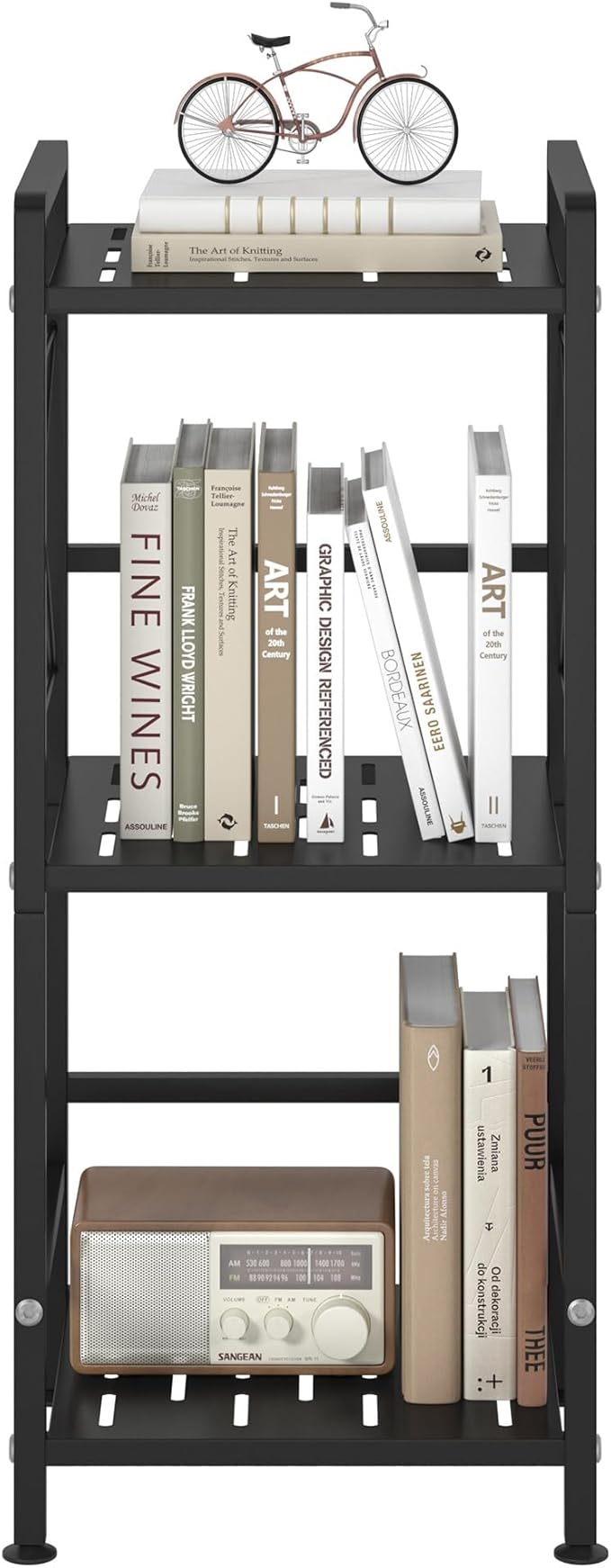 JSB 3 Tier Metal Bookshelf Bathroom Storage Standing Shelf Unit Kitchen Storage Organizer Display Rack Bookcases Shelves for Living Room, Bedroom, Office (Black, 3 Tier)