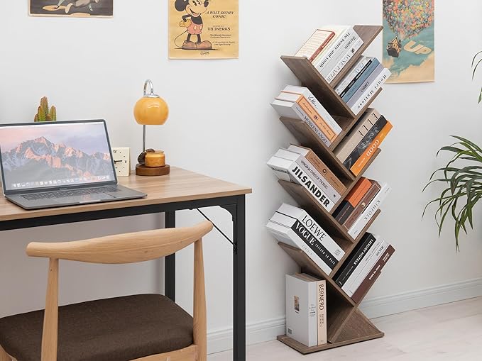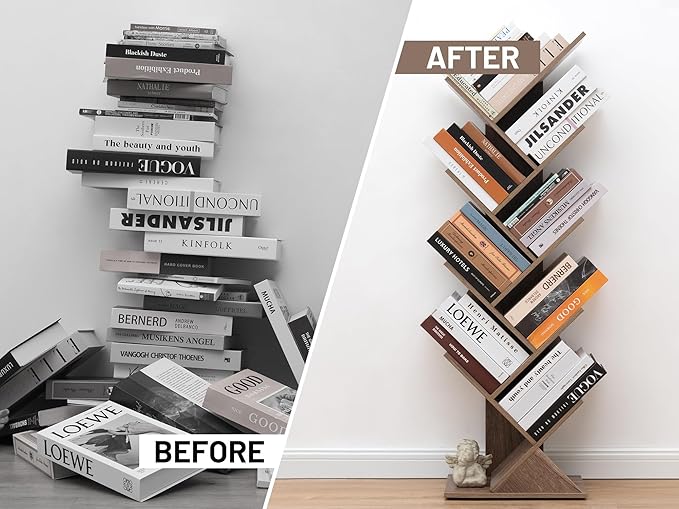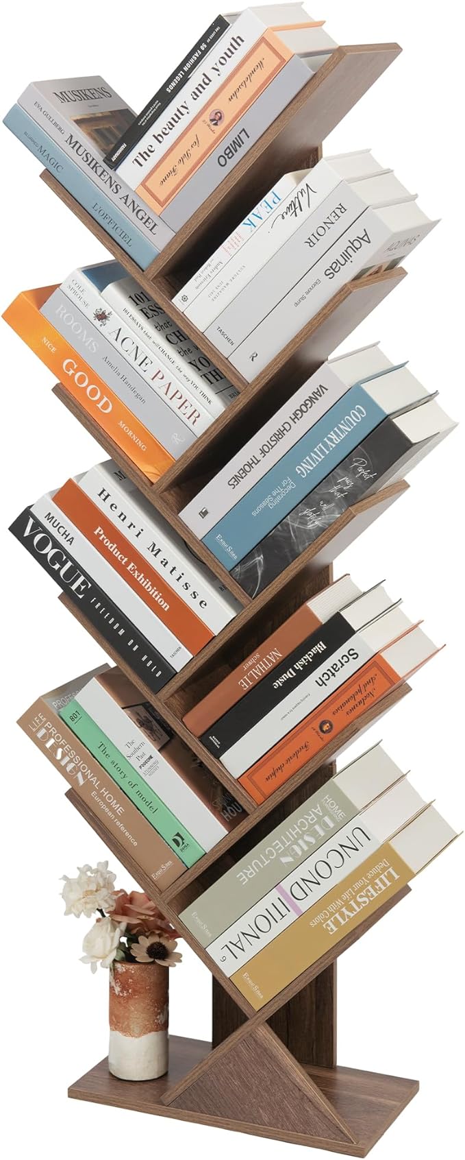 Labcosi 8 Tier Tree Bookshelf, Floor Standing Wood Tree Bookcase, Tall Book Storage Rack for Books/CDs, Book Organizer Shelves for Home Office, Bedroom, Living Room