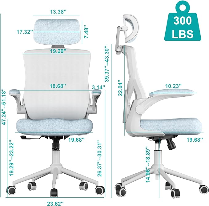 Ergonomic Office Chair, High Back Mesh Desk Chair with Thick Molded Foam Cushion, Coat Hanger, Adjustable Headrest, Lumbar Support, Tilt & Lock Function-Task Chair (Carolina Blue)