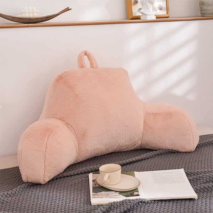 Aimuan Reading Pillow Bed Rest Wedge Large Adult Backrest Pillow with Arms Back Support for Sitting Up in Bed Cushion Incline Rest Sleeping Snoring Pillow, (Large, Blush)