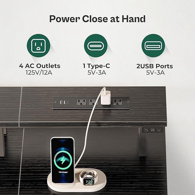 47 Inch Computer Desk with Power Outlets and LED Lights, Gaming Desk with 4 Drawers, Office Desk with Monitor Stand, Study Desk Work Desk for Home Office, Small Spaces, Black