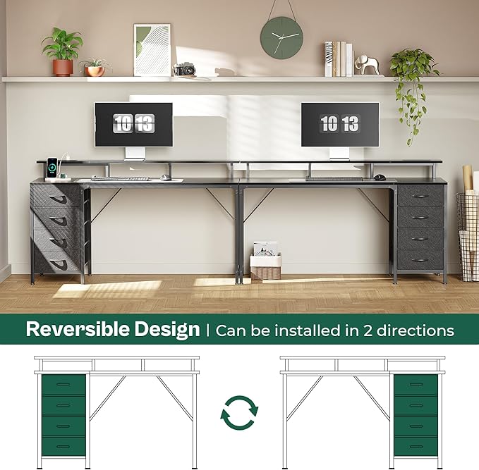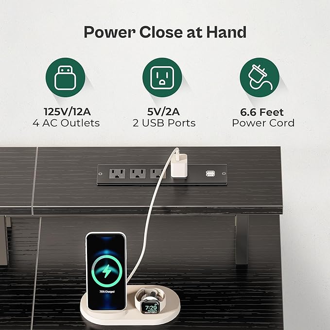 55 Inch Computer Desk with Power Outlets and LED Lights, Gaming Desk with 4 Drawers, Office Desk with Monitor Stand, Study Desk Work Desk for Home Office, Black