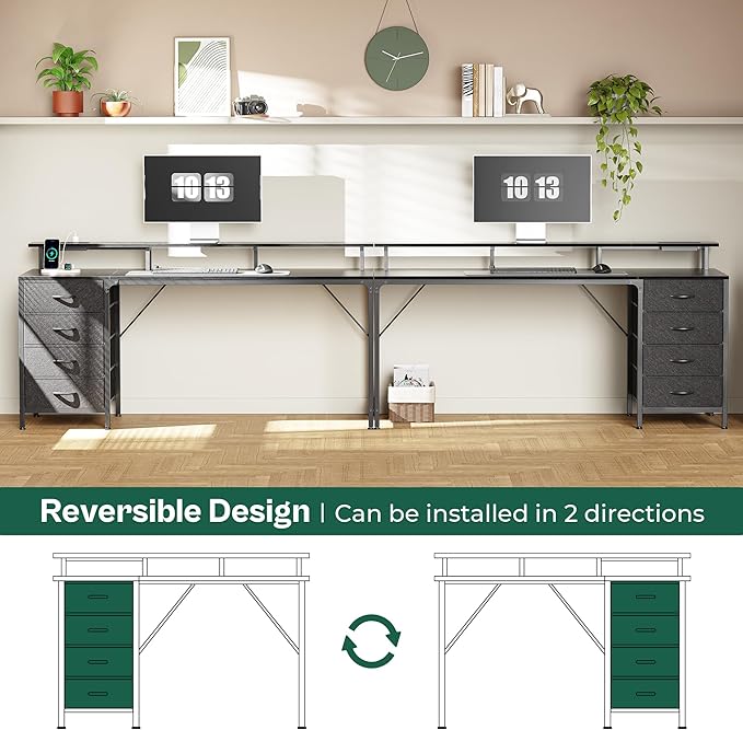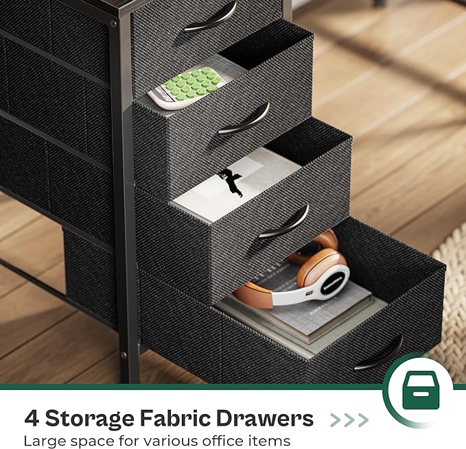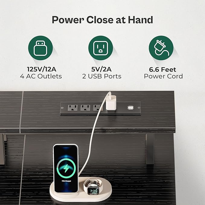 63 Inch Computer Desk with Power Outlets and LED Lights, Gaming Desk with 4 Drawers, Office Desk with Monitor Stand, Study Desk Work Desk for Home Office, Black