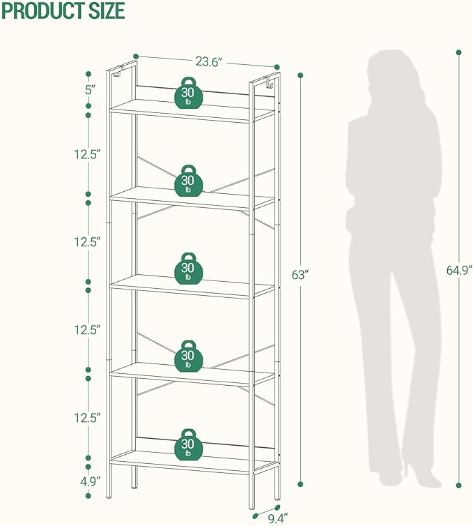 About This [Meet Various Storage Needs] This 9.4 "D x 23.6" W x 62.9 "H widened bookshelf provides you with...