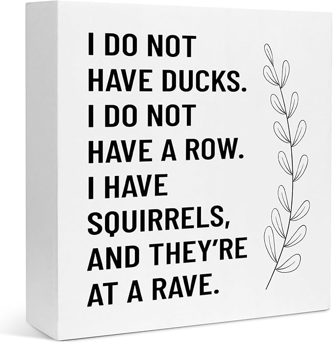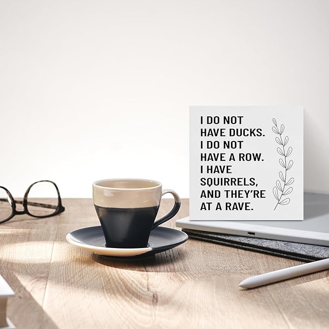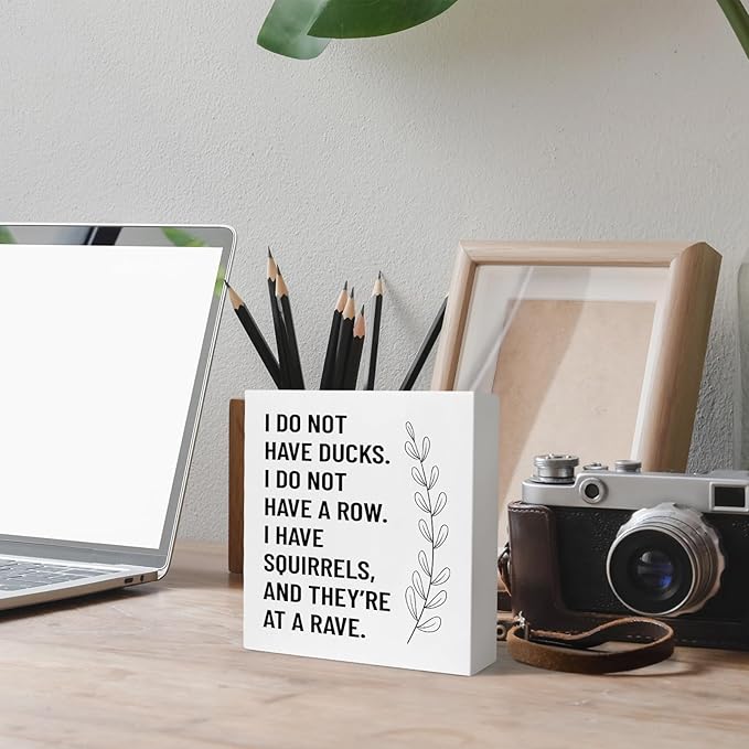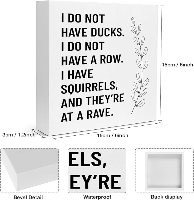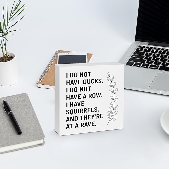 Creoate Funny Office Decor - I Don't Have Ducks or a Row - White Box Sign Desk Decor Humorous Wooden Block Plaque Box Sign for Home Office Shelf Table Decoration, 6x6 Inch