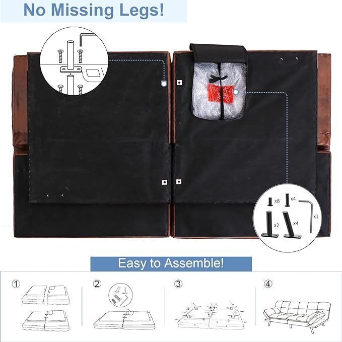 MUUEGM Futon Sofa Bed Convertible Memory Foam Sleeper Couch,Modern Faux Leather Loveseat for Living Room,Small Compact Space,Dorm,Office,Adjustable Armrests Backrest Sofabed, Brown