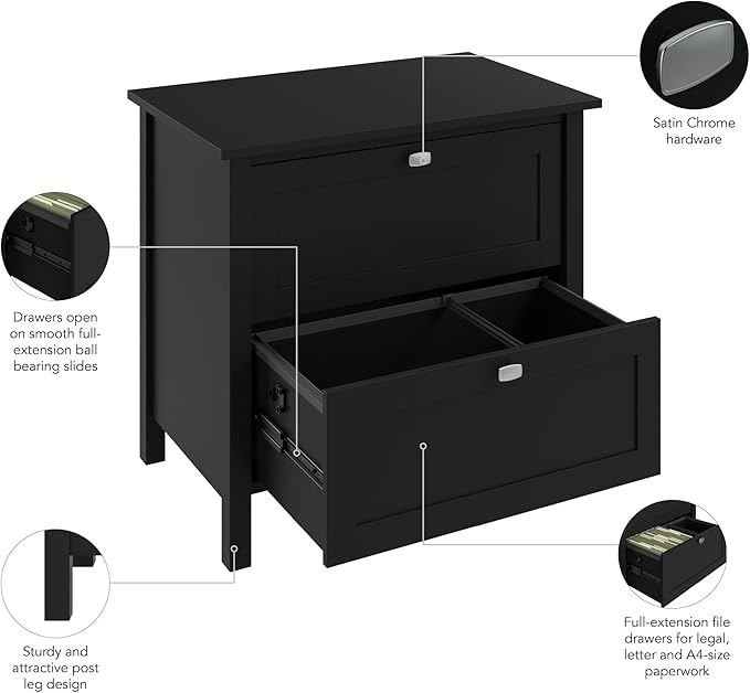 Bush Furniture Broadview 2 Drawer Lateral File Cabinet in Classic Black | Storage for Home Office Workspace