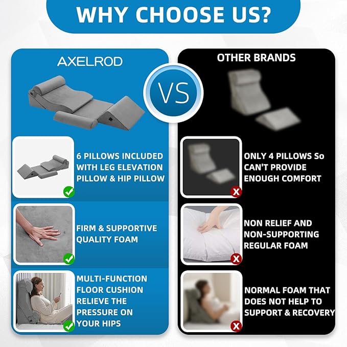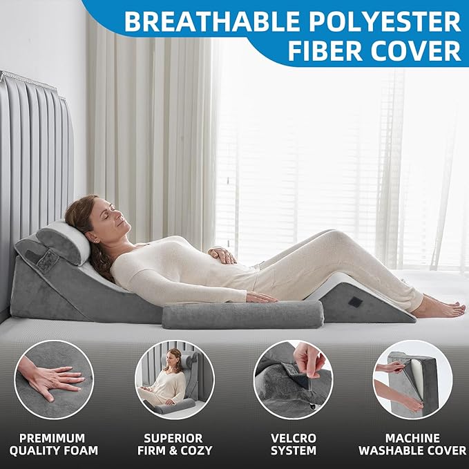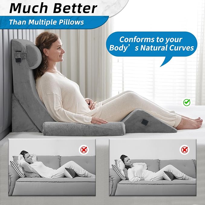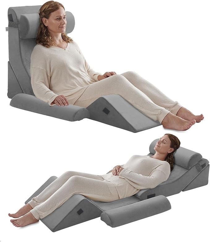 Axelrod 6PCS Orthopedic Bed Wedge Pillow Set, Post Surgery Foam for Back, Neck & Leg Pain Relief Comfortable & Adjustable Ortho Pillows- Anti Snoring, Heartburn, Acid Reflux & GERD Sleeping Light Grey
