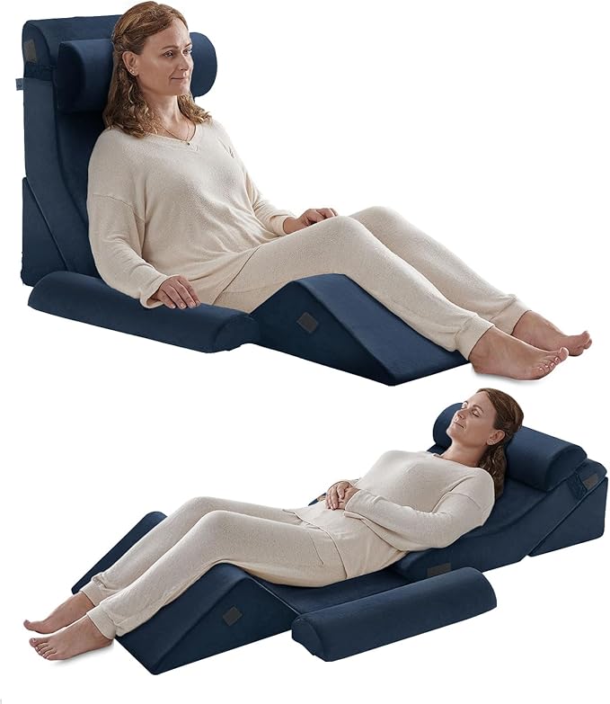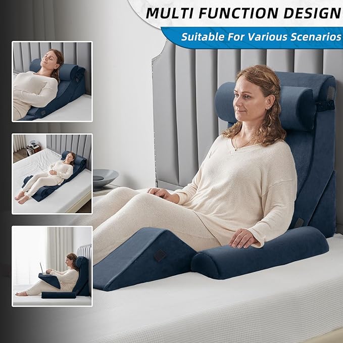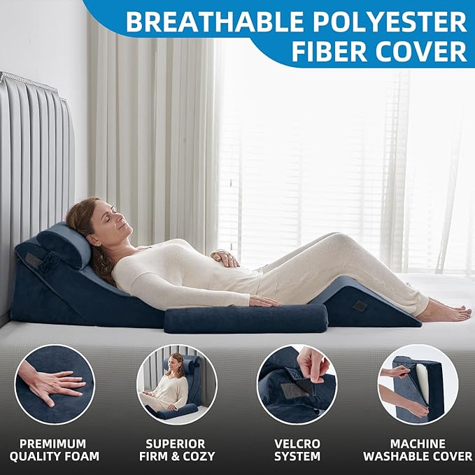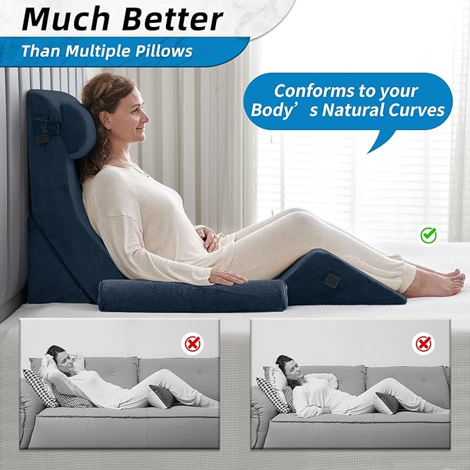 Axelrod 6PCS Orthopedic Bed Wedge Pillow Set, Post Surgery Foam for Back, Neck & Leg Pain Relief Comfortable & Adjustable Ortho Pillows- Anti Snoring, Heartburn, Acid Reflux & GERD Sleeping Indigo
