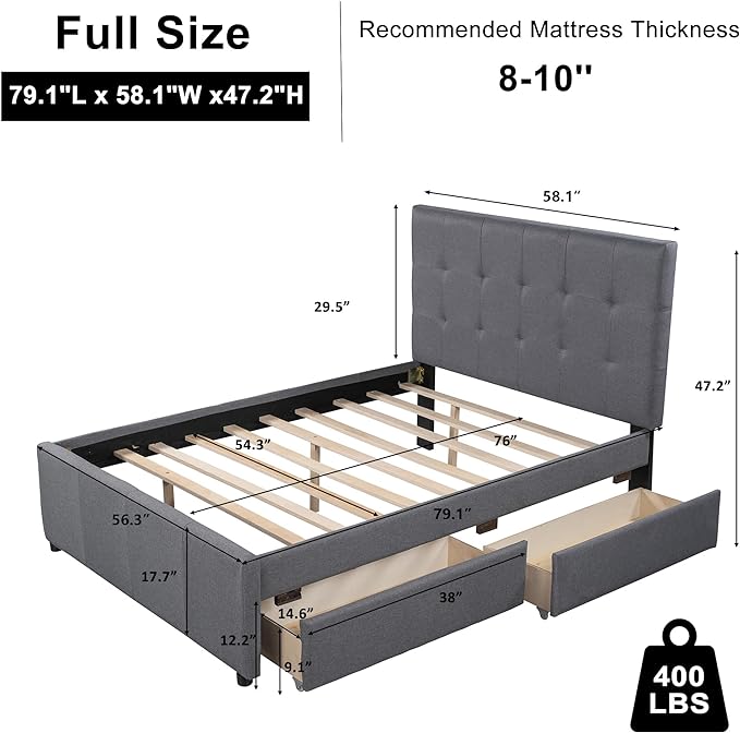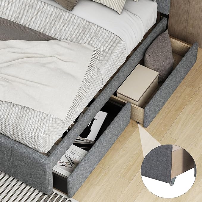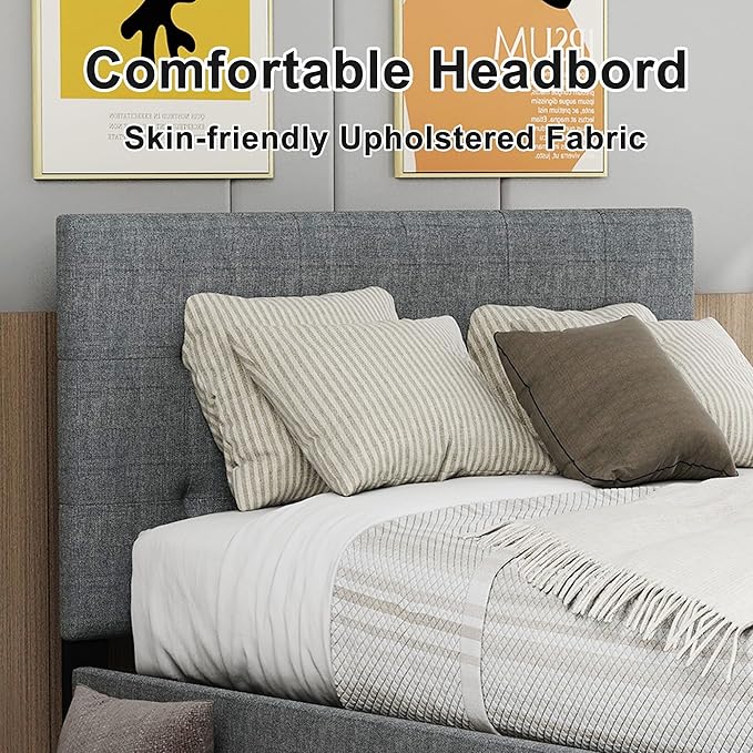 Bellemave Full Size Bed Frame with 2 Storage Drawers,Linen Upholstered Platform Bed Frame with Headboard for Kids,Adults,No Box Spring Needed,Gray
