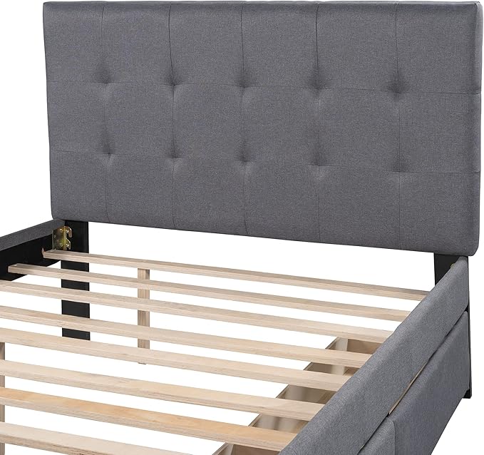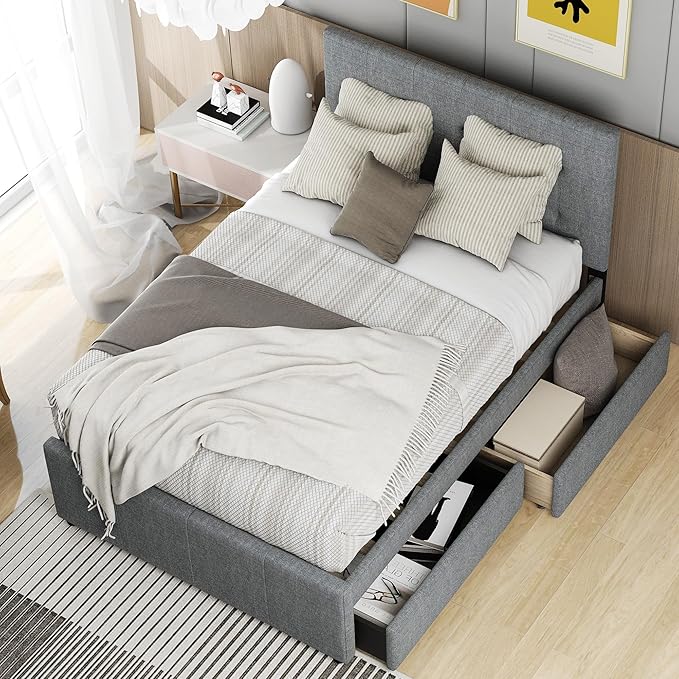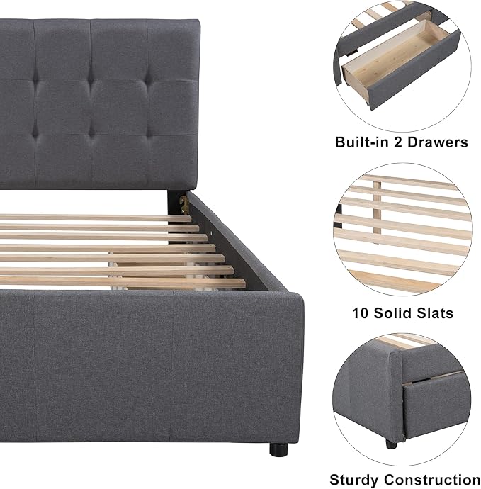 About This Linen 【Storage Drawers】This full size platform bed frame comes with two drawers,providing ample storage space for your extra...