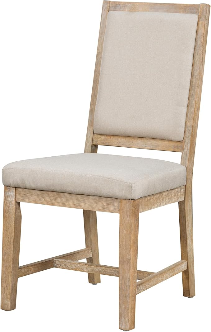 5-Piece Dining, Farmhouse Set-Extendable Round Table and 4 Upholstered Chairs for Kitchen, Living Room, Natural Wood Wash