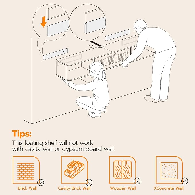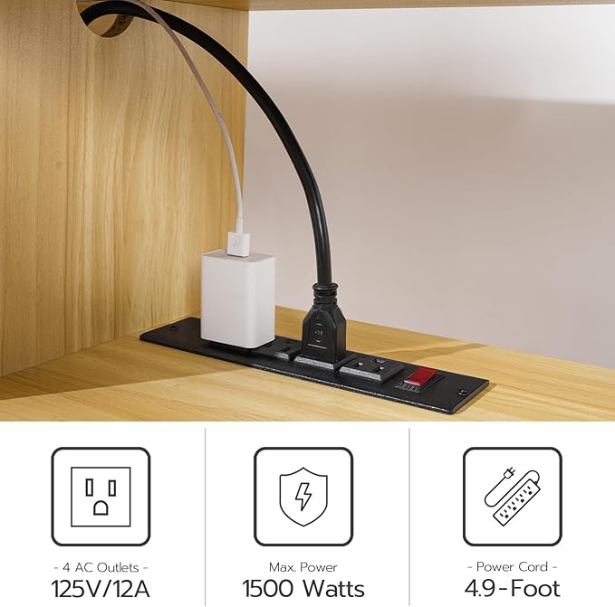 About This Convenient Charging Station with Switch: The wall-mounted TV stand features 4 standard outlets and 1 switch control for...