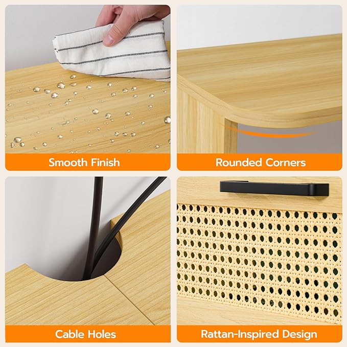 HOOBRO Floating TV Stand for TV up to 75 inches, Wall-Mounted TV Cabinet with 4 Power Outlet, Floating Entertainment Center TV Media Console Shelves with Rattan Flip-Down-Door, Natural NL160UDS01