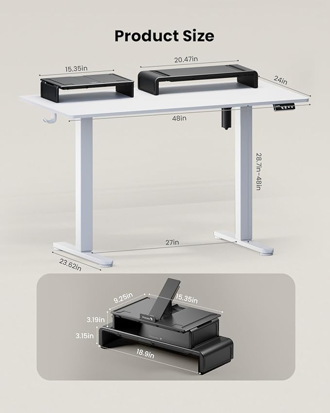 ProtoArc Standing Desk with Dual Monitor Stand Riser, 48 x 24 Inches Height Adjustable Desk with Storage, Electric Stand up Desk with Laptop Stand (Black/White)