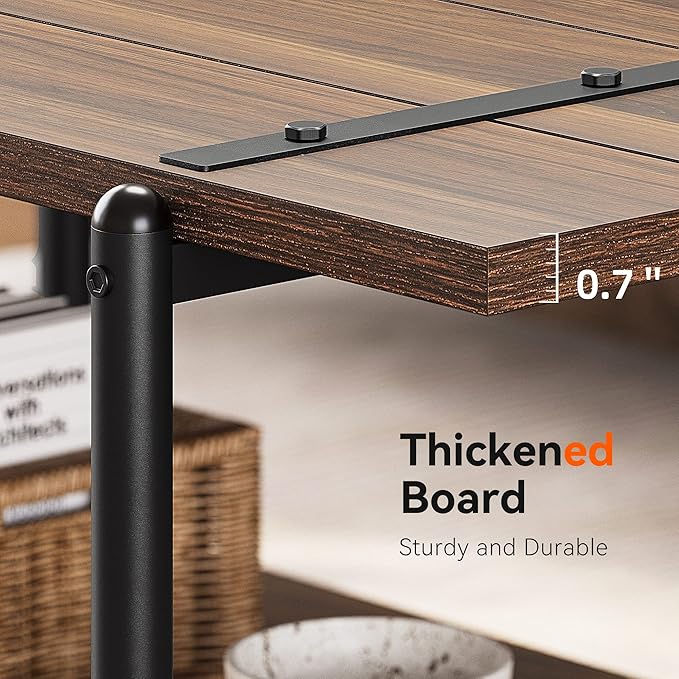 Towallmark 2-Tier Wood Coffee Table, Farmhouse Coffee Table with Storage Shelf- Rustic Metal Rectangle Center Living Room Coffee Table Accent Furniture for Home Office (Black Walnut)