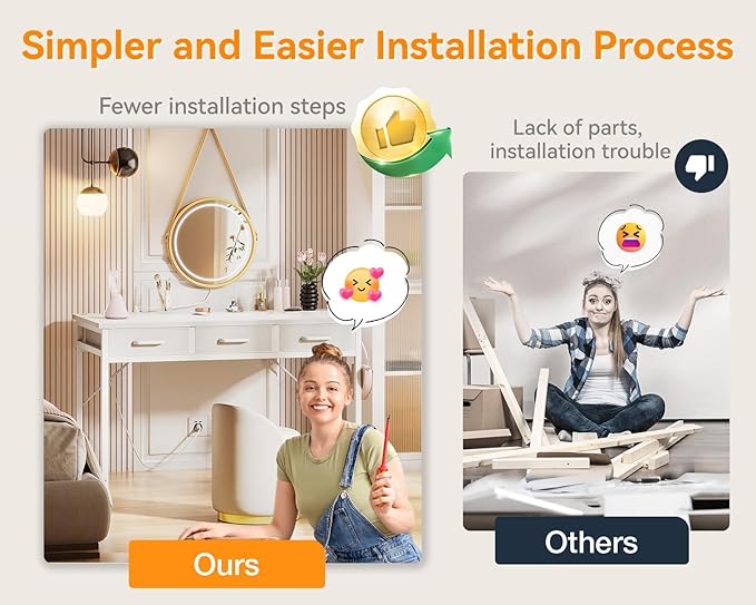 About This 【Vanity Table without Mirror】This elegant white vanity desk is perfect for accommodating various styles of vanity mirrors and...