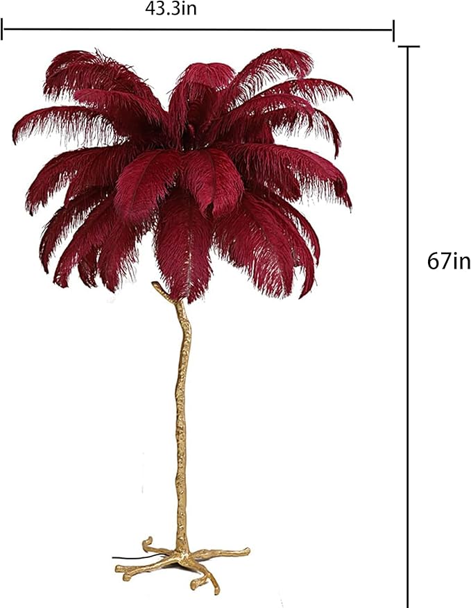 Romantic Ostrich Feather Floor Lamp Modern Luxury Resin Ostrich Feather LED Lamp Living Room Bedroom Corner Decoration Floor Lamp (Wine Red