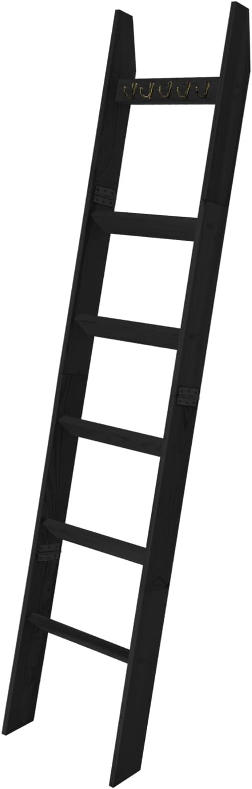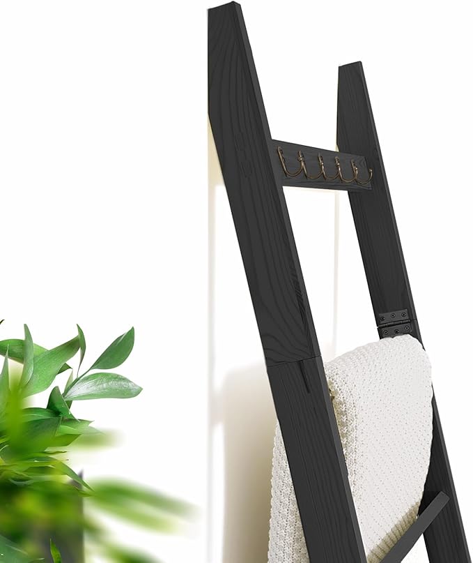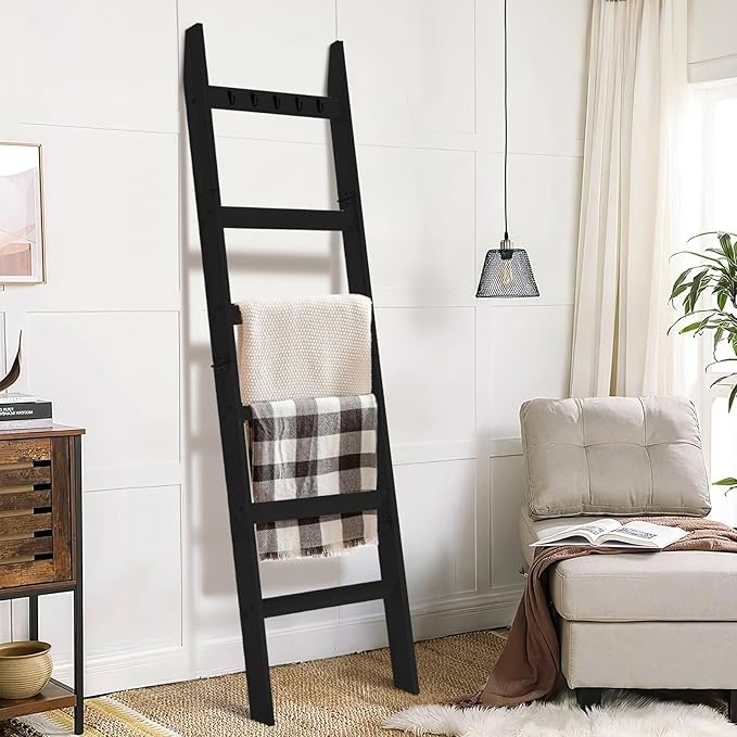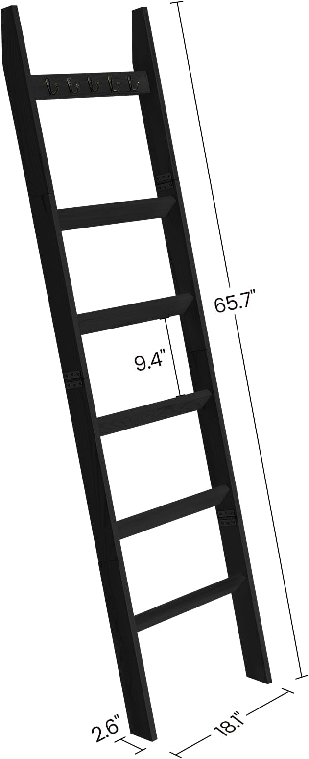 TEAKMAMA Blanket Ladder for Living Room and Bedroom, 5.4 Ft Wall Leaning Blanket Rack, Rustic Decorative Farmhouse Blanket Storage, Quilt Rack, Ladder Holder, Easy to Assemble (Black)