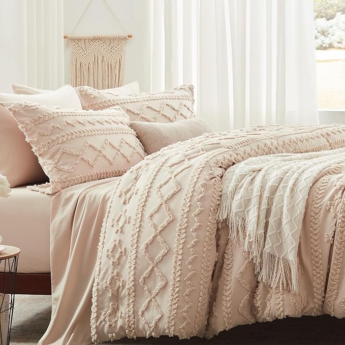 Anluoer King Comforter Set 7 Pieces, Beige Tufted Bed in a Bag with comforters and sheets, All Season Bedding Sets with 1 Comforter, 2 PillowShams, 2 Pillowcases, 1 Flat Sheet, 1 Fitted Sheet