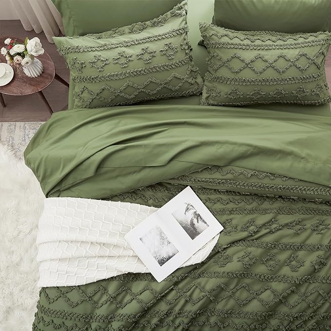 Anluoer King Comforter Set 7 Pieces, Olive Green Tufted Bed in a Bag with comforters and sheets, All Season Bedding Sets with 1 Comforter, 2 PillowShams, 2 Pillowcases, 1 Flat Sheet, 1 Fitted Sheet