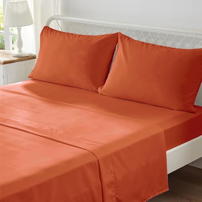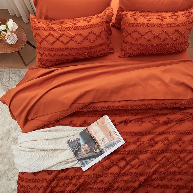 Anluoer Queen Comforter Set 7 Pieces, Burnt Orange Tufted Bed in a Bag with comforters and sheets, All Season Bedding Sets with 1 Comforter, 2 PillowShams, 2 Pillowcases, 1 Flat Sheet, 1 Fitted Sheet