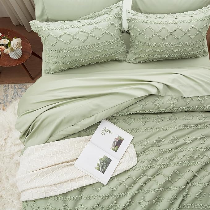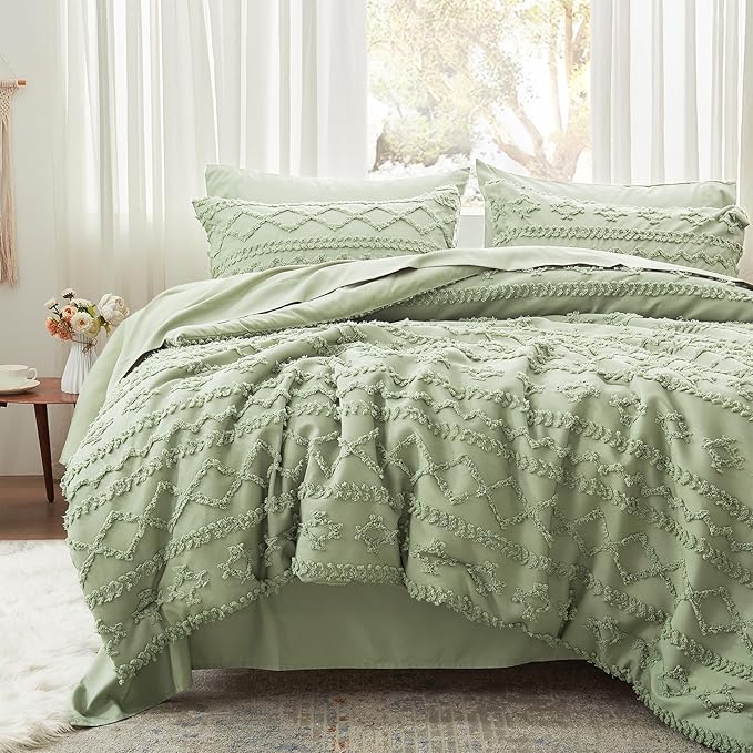 Anluoer Queen Comforter Set 7 Pieces, Sage Green Tufted Bed in a Bag with comforters and sheets, All Season Bedding Sets with 1 Comforter, 2 PillowShams, 2 Pillowcases, 1 Flat Sheet, 1 Fitted Sheet