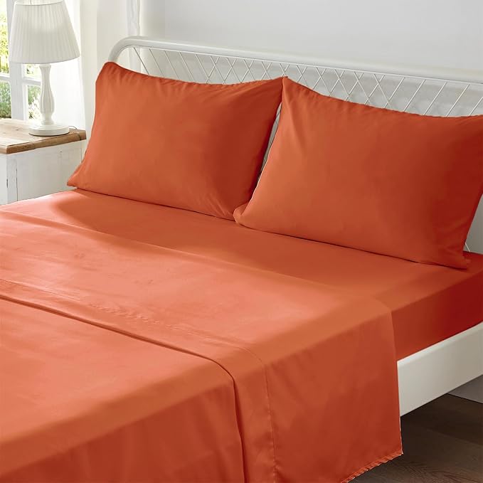 Anluoer King Comforter Set 7 Pieces, Burnt Orange Tufted Bed in a Bag with comforters and sheets, All Season Bedding Sets with 1 Comforter, 2 PillowShams, 2 Pillowcases, 1 Flat Sheet, 1 Fitted Sheet