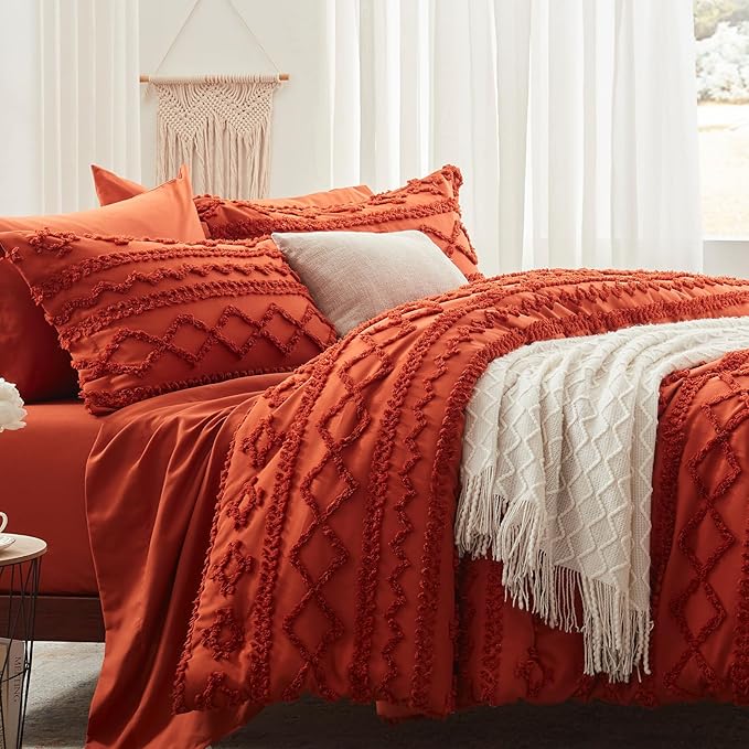 Anluoer Full Comforter Set 7 Pieces, Burnt Orange Tufted Bed in a Bag with comforters and sheets, All Season Bedding Sets with 1 Comforter, 2 PillowShams, 2 Pillowcases, 1 Flat Sheet, 1 Fitted Sheet