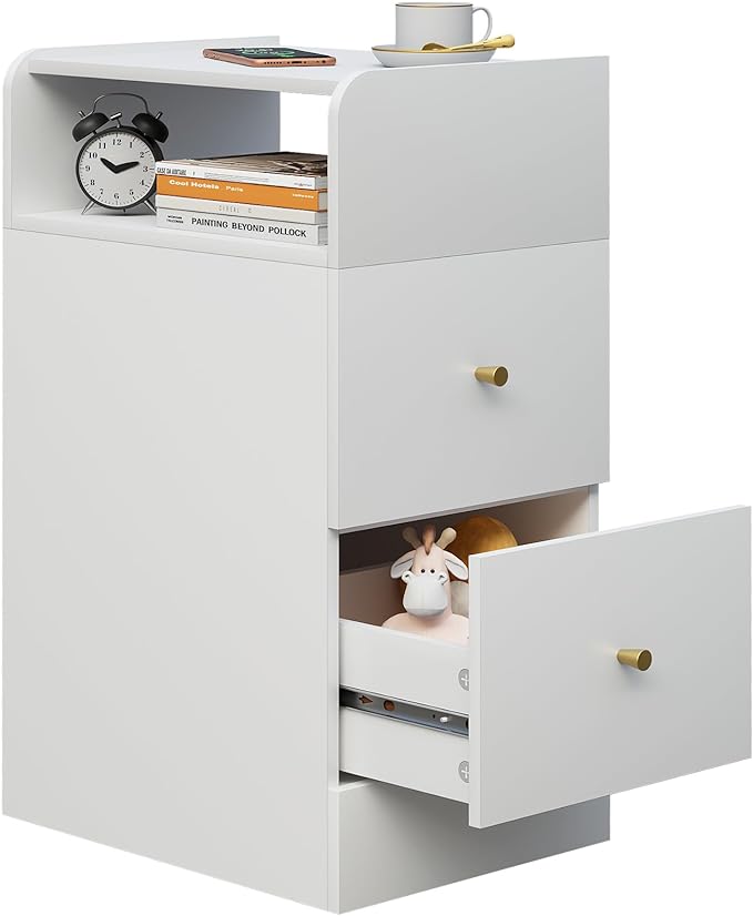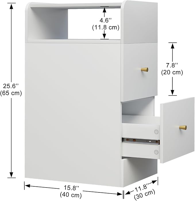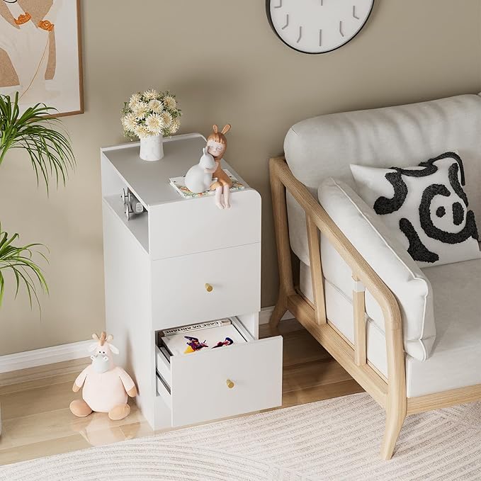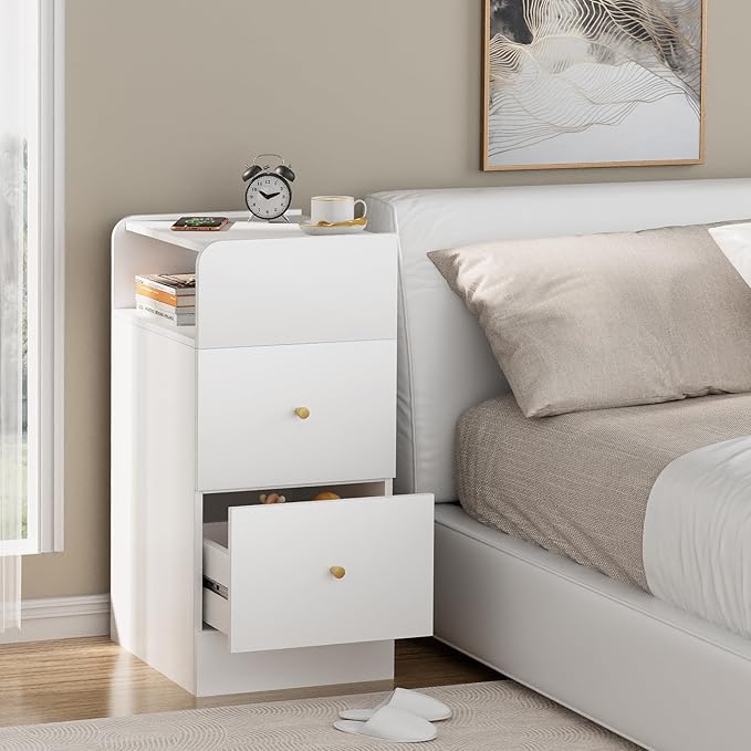 About This 【Save Space】The white nightstand is specially designed for small apartments. The 11 inches ultra-narrow design can fit even...