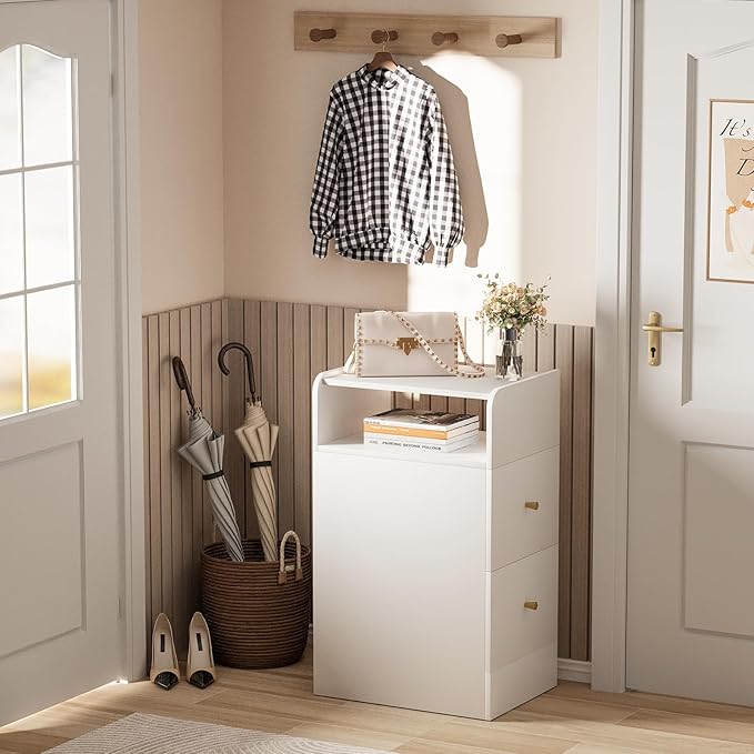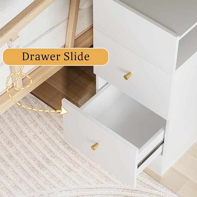 White Nightstand with Two Drawers,Chest of Drawers for Bedroom with Side Opening Storage Rack,3 Tiers Modern Night Table for Bedroom Storage Furniture (Round Corner)