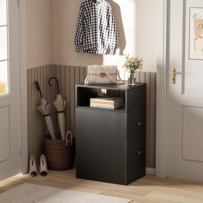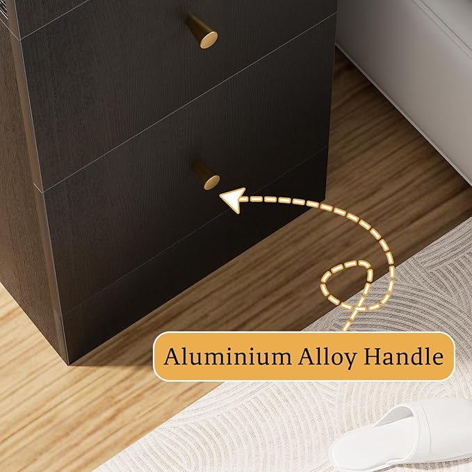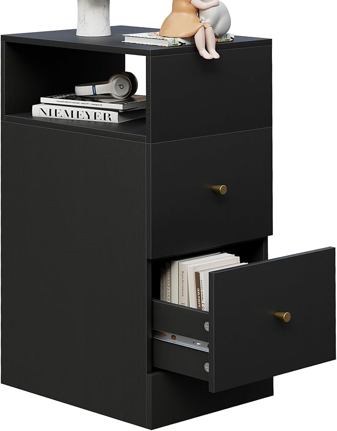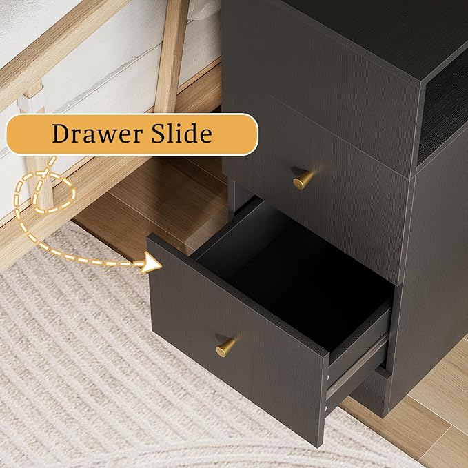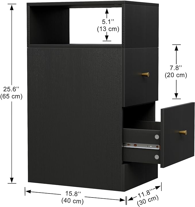 White Nightstand with Two Drawers,Chest of Drawers for Bedroom with Side Opening Storage Rack,3 Tiers Modern Night Table for Bedroom Storage Furniture (Blcak,Right Angle)