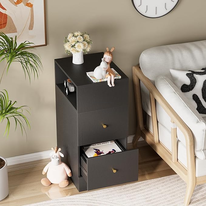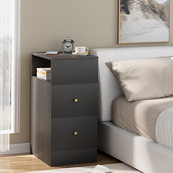 About This 【Save Space】The white nightstand is specially designed for small apartments. The 11 inches ultra-narrow design can fit even...