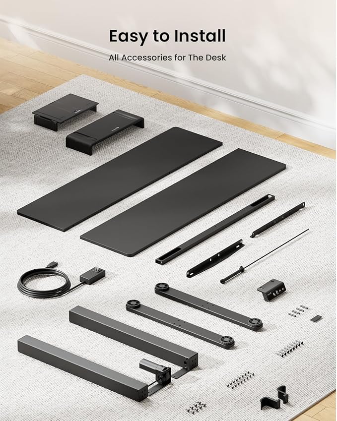 About This 【Ergonomic and Health Work Solution】The 55 x 24-inch adjustable standing desk is equipped with 2 preset buttons, allowing...