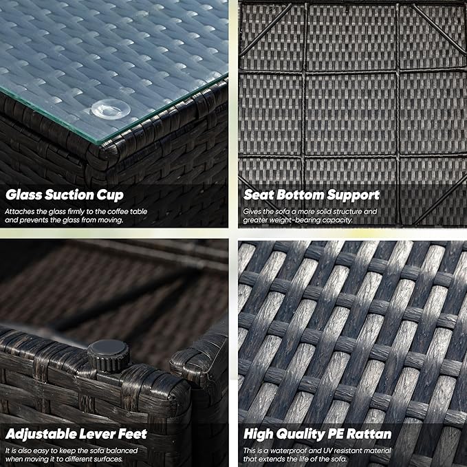 About This CHOOSE EXCELLENT MATERIAL:Greesum 3 Piece Patio Furniture Set is made of sturdy rust-proof steel frame and flexible wicker.This...