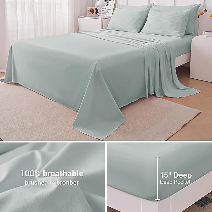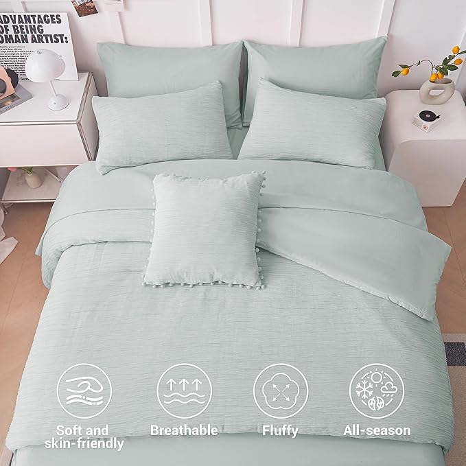 8 Piece Woven Texture King Size Comforter Set Green, Bed in A Bag Bedding King with Comforter and Sheets, Soft Lightweight Comforter Set with Deocor Throw Pillow, Sage Green