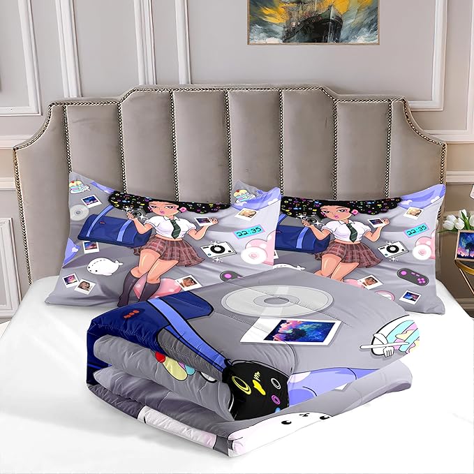 African American Girl Bedding Set Full Comforter Set for Girls Bedroom Decor Black Girl Comforter Set with 2 Pillowcases Kids Comforter Sets Gifts for Girls Kids Teens
