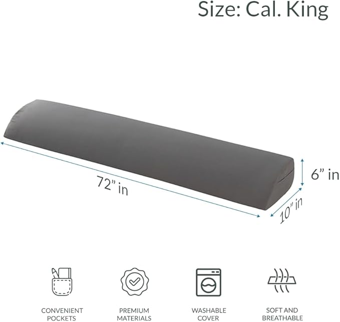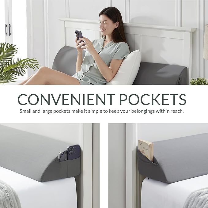 Hearth & Harbor Bed Wedge Pillow for Headboard, Bed Gap Filler Cal King Size with Side Pockets, Headboard Wedge Pillow for Sleeping, Triangle Mattress Gap Filler 72”x10” Pillow Wedge for Headboard Gap