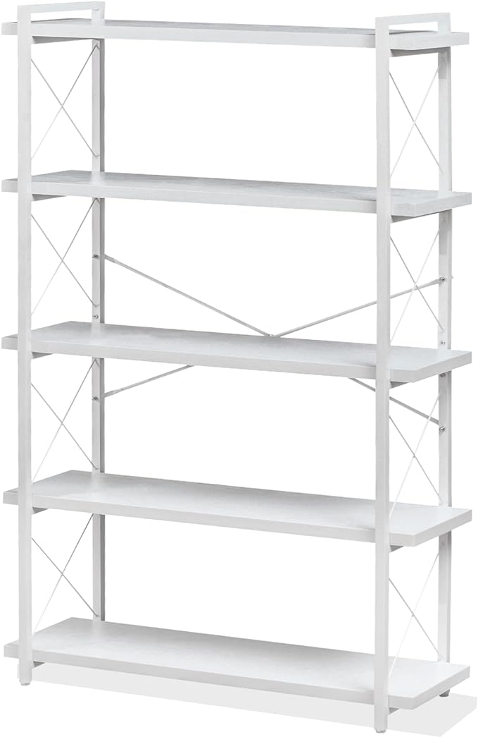 HCHQHS Bookshelf, 5-Tier Industrial Bookcase, White Open Book Shelf, Freestanding Tall Bookshelves with Metal Frame