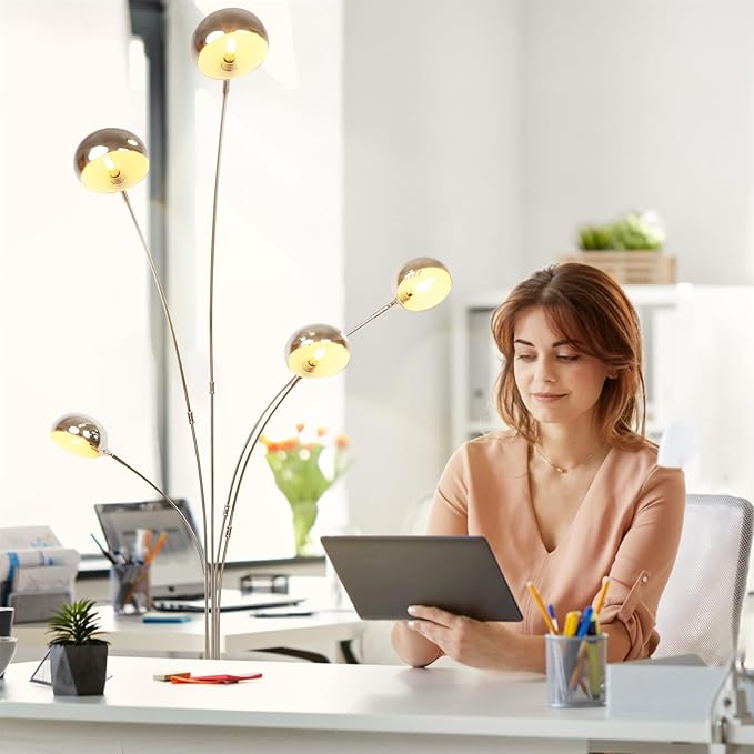 DLLT 5-Light Arc Floor Lamp, 86.6" Chrome Floor Lamps for Living Room, Multi-Head LED Standing Tall Lamp with Adjustable Arms, Modern Tree Floor Lamp for Bedroom, Study, Office, E12 Bulbs Included
