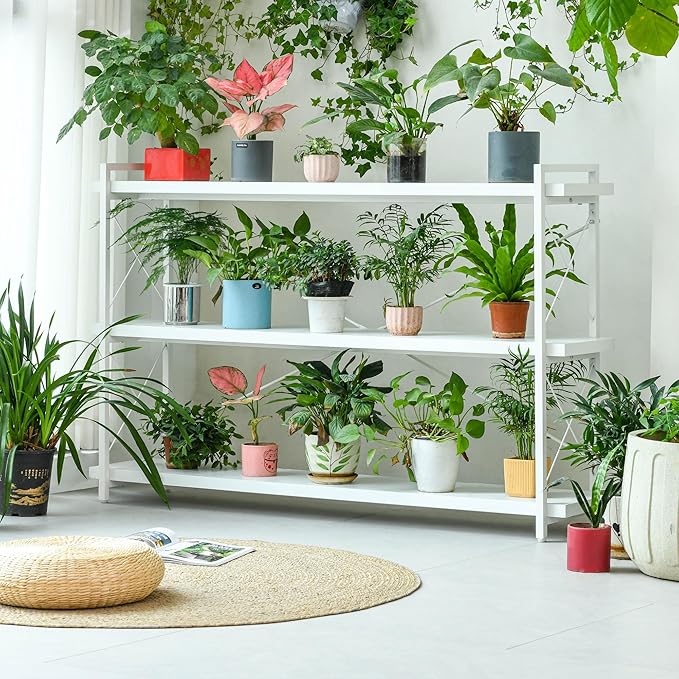 HCHQHS Bookshelf, 3-Tier Long Industrial Bookcase, White Open Book Shelf, Freestanding Horizontal Bookshelves with Metal Frame