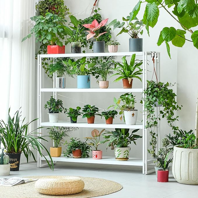 HCHQHS Bookshelf, 4-Tier Industrial Bookcase, White Open Book Shelf, Freestanding Tall Bookshelves with Metal Frame