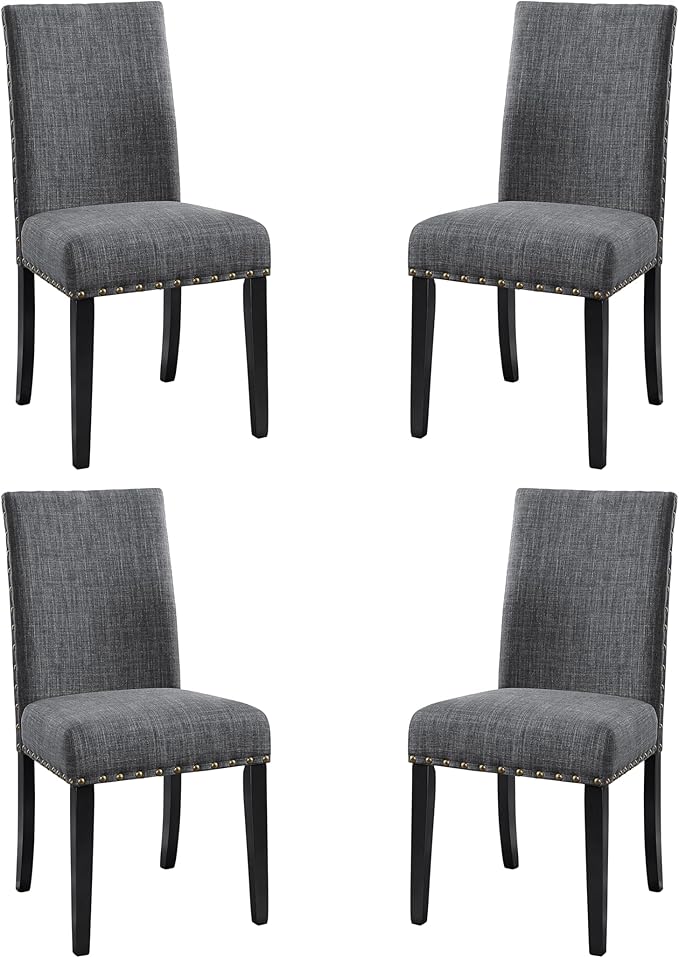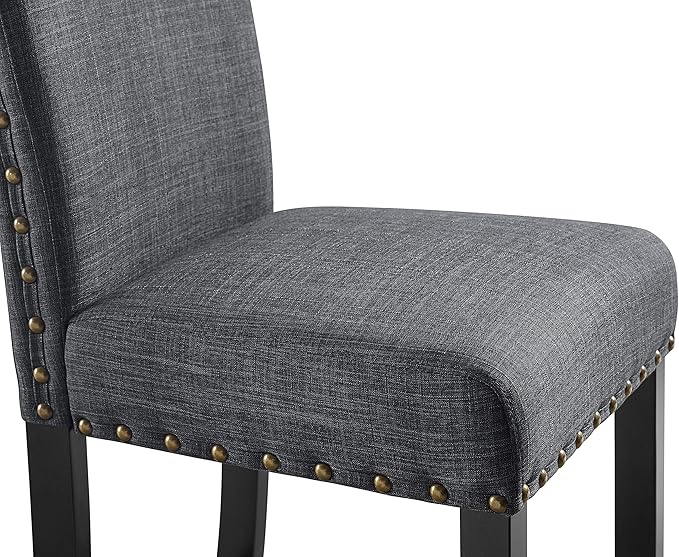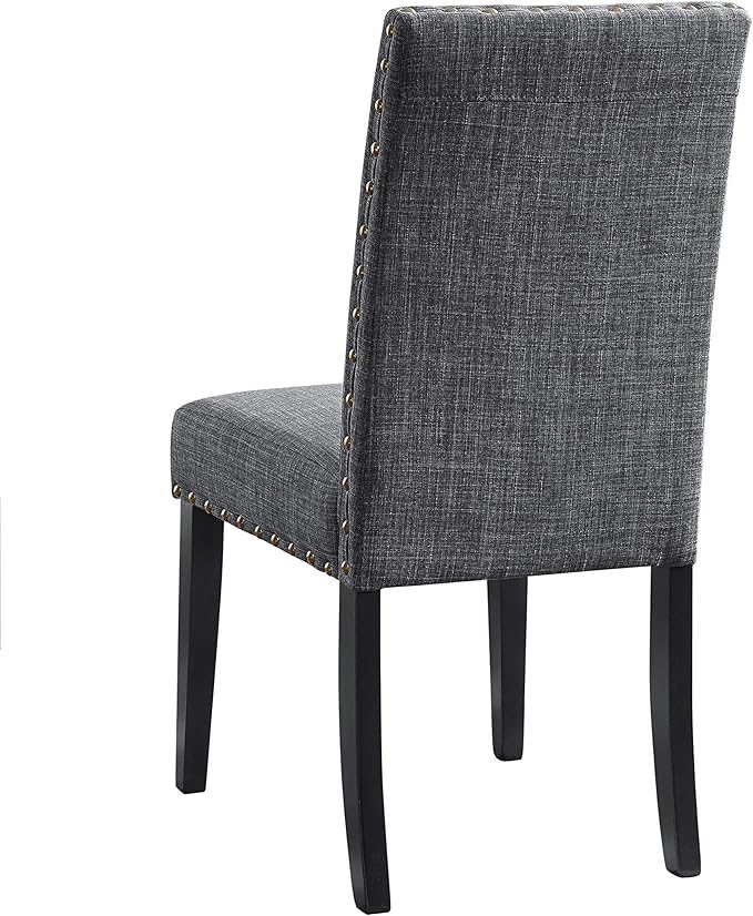 New Classic Furniture Crispin Dining Chair (Set of Four), 100% Polyester Granite Gray Fabric with Espresso Legs