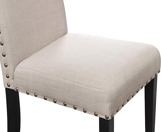 New Classic Furniture Crispin Dining Chair (Set of Six), 100% Polyester Natural Beige Fabric with Espresso Legs