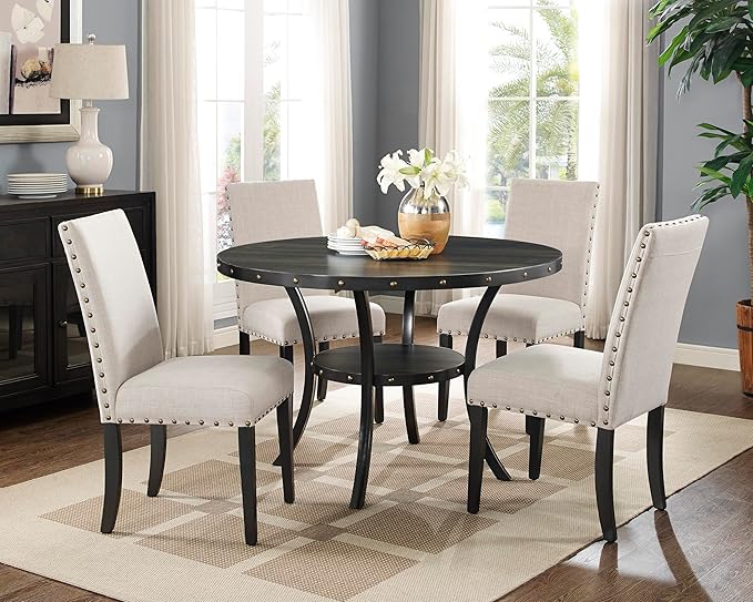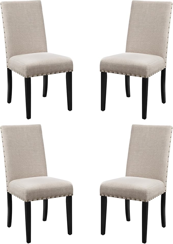 New Classic Furniture Crispin Dining Chair (Set of Four), 100% Polyester Natural Beige Fabric with Espresso Legs