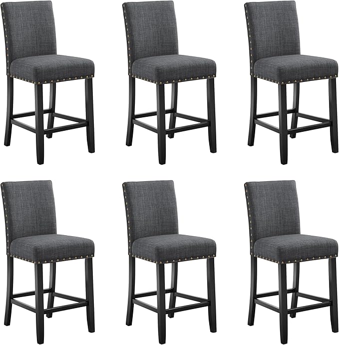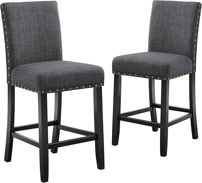 New Classic Furniture Crispin Counter Dining Chair (Set of Six), 100% Polyester Granite Gray Fabric with Espresso Legs