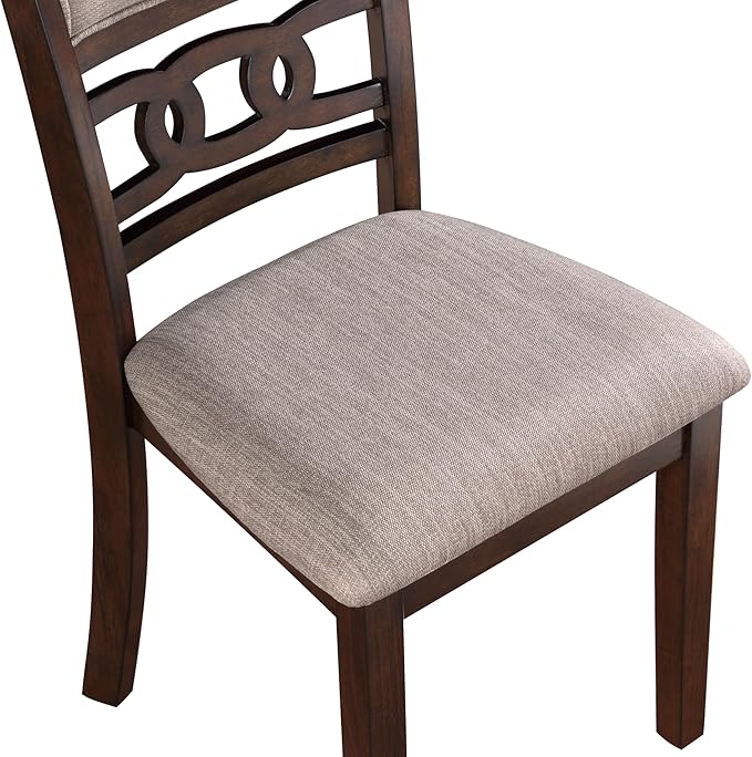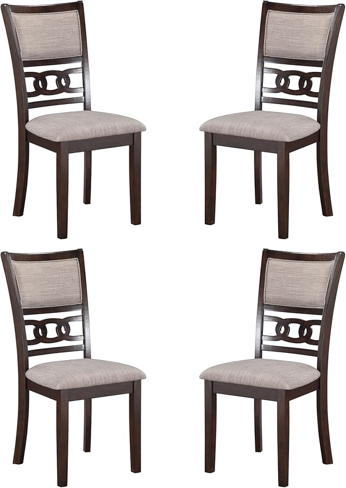 New Classic Furniture Gia Dining Chair (Set of Four), Light Brown Fabric Upholstered Seat & Back Rest, Cherry Brown