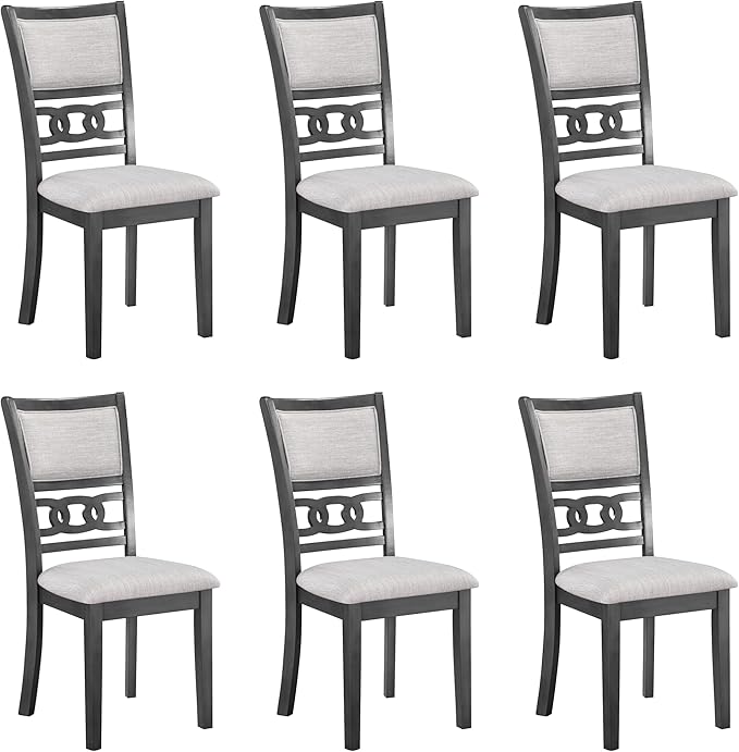 New Classic Furniture Gia Dining Chair (Set of Six), Light Gray Fabric Upholstered Seat & Back Rest, Gray