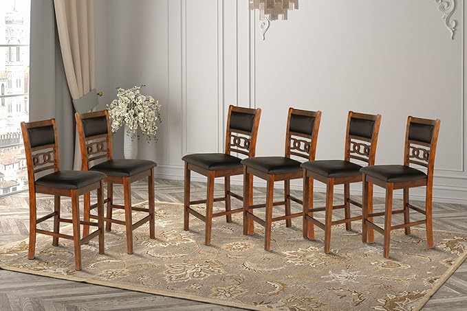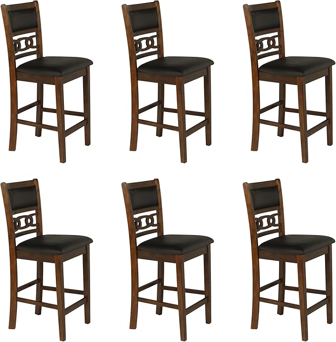 New Classic Furniture Gia Counter Dining Chair (Set of Six), Black PU Upholstered Seat & Back Rest, Brown