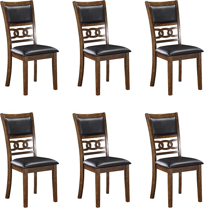 New Classic Furniture Gia Dining Chair (Set of Six), Black PU Upholstered Seat & Back Rest, Brown